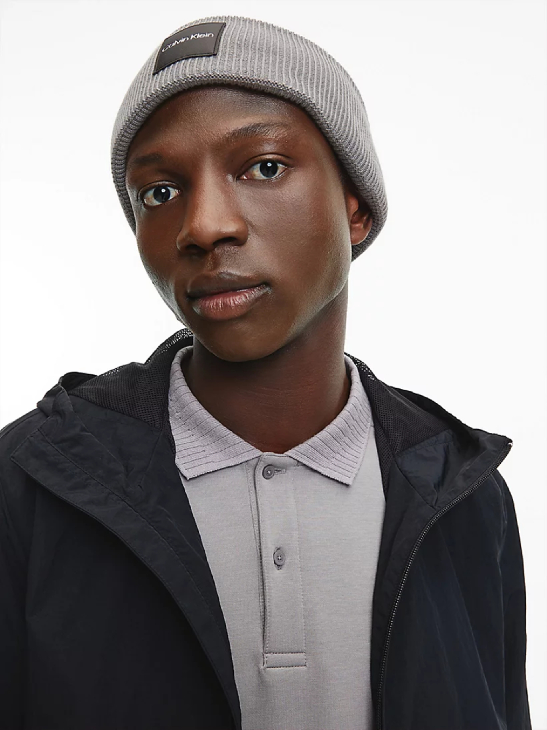 Pánská šedá čepice od Calvin Klein.