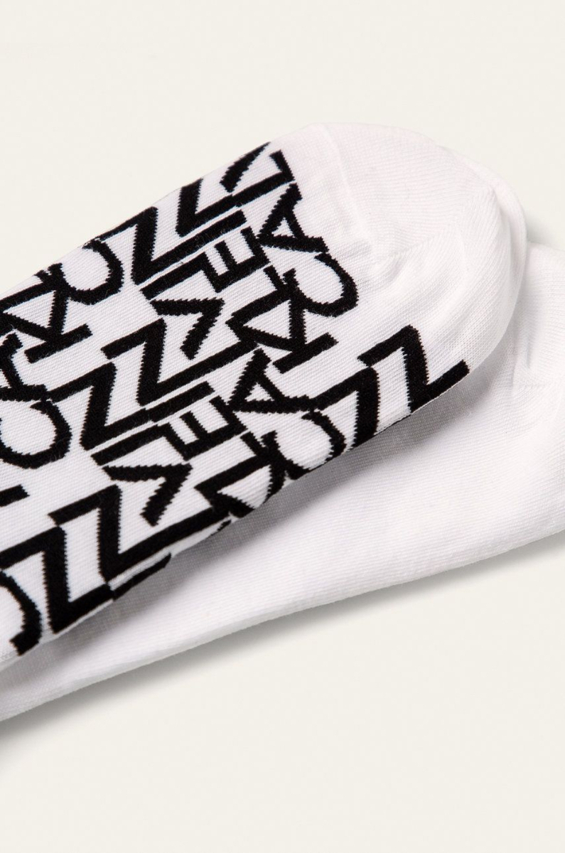 Jedny ponožky jsou bílé a druhé bílé s monogramy.