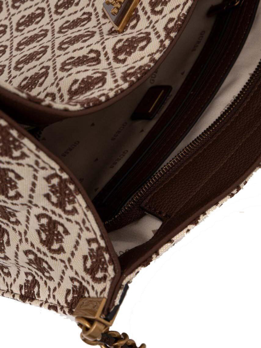 Kabelka má jednu komoru, dve vrecká zapínacie na zips a priehradky na karty.