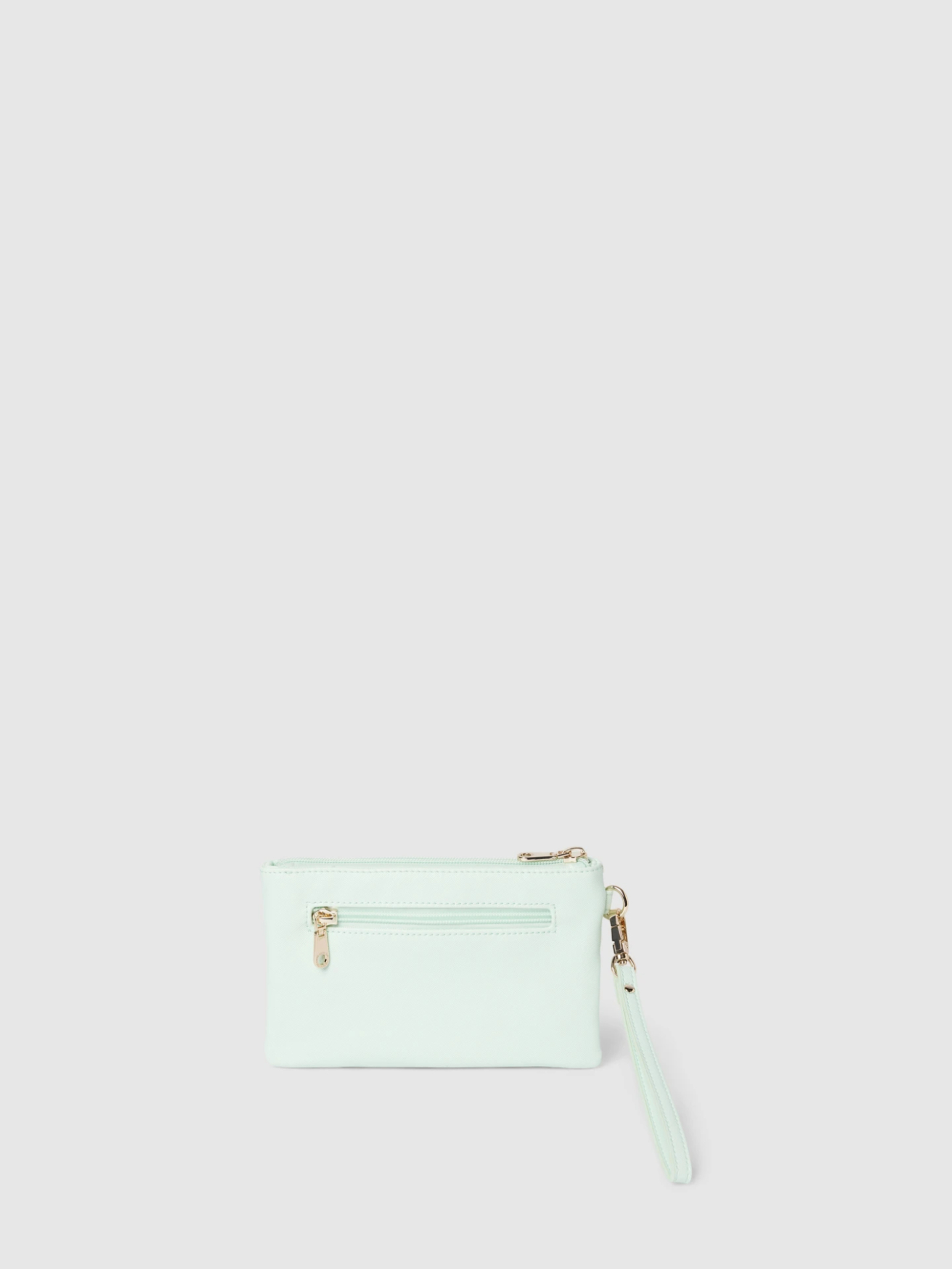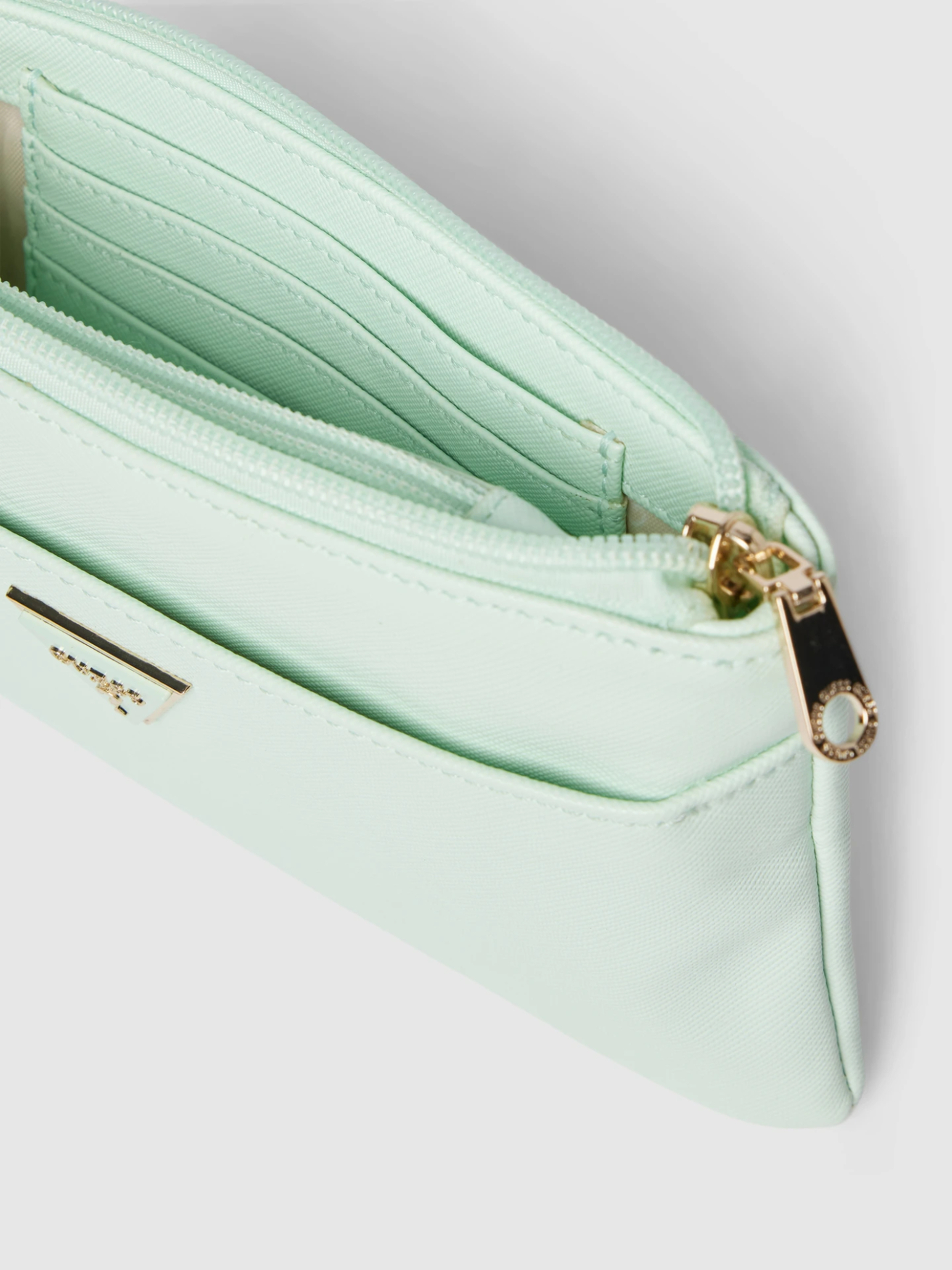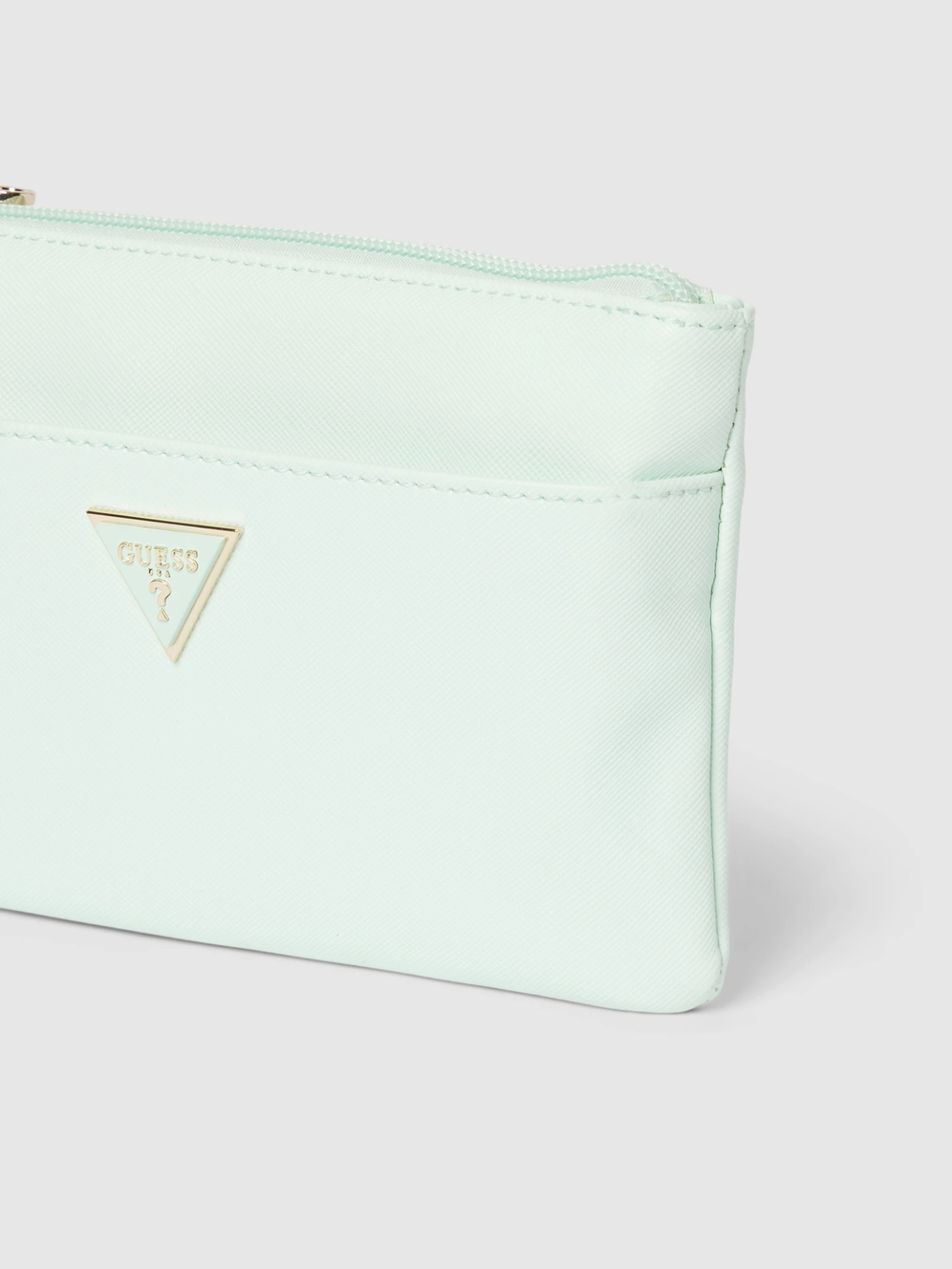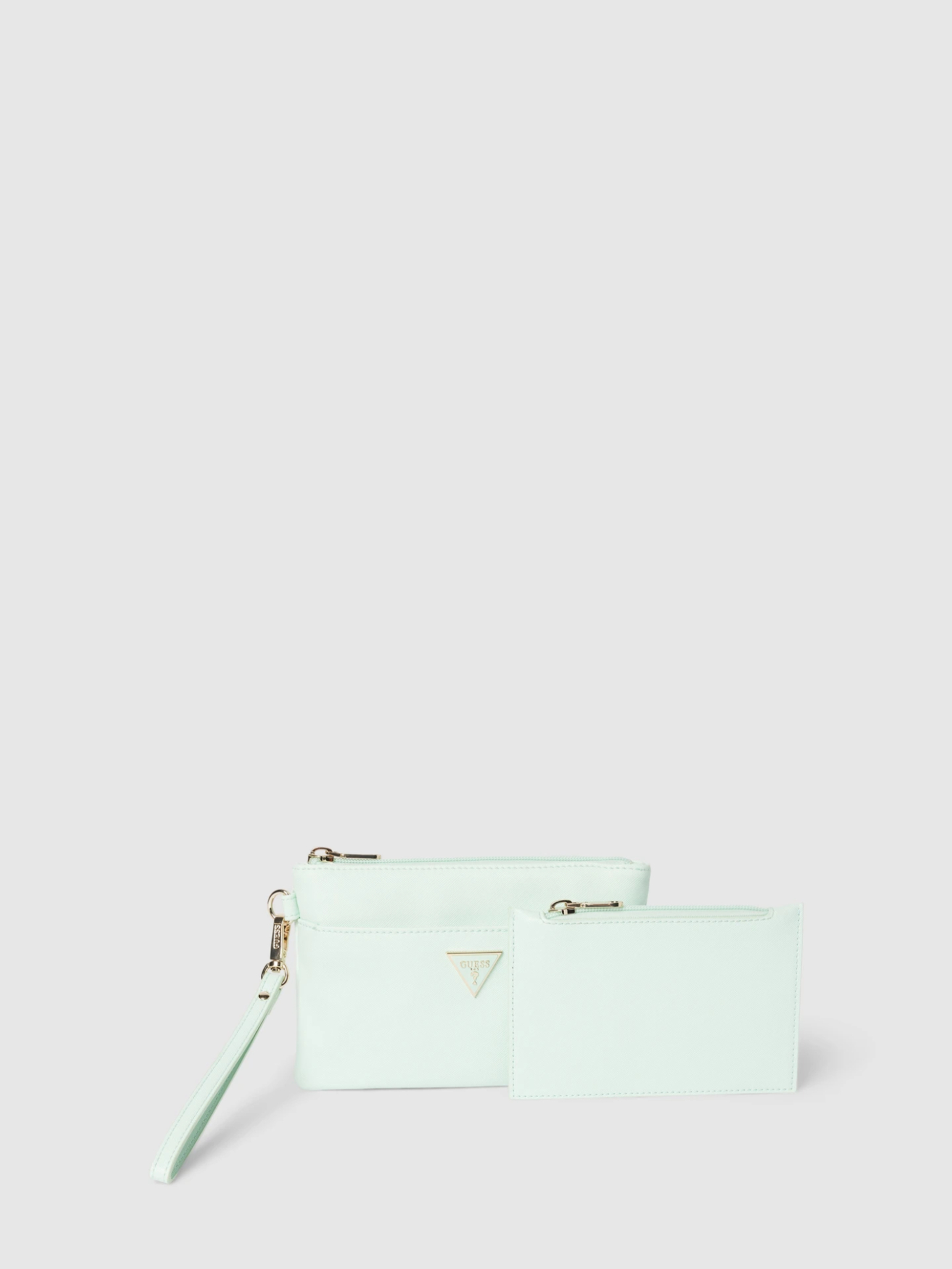 Dámska malá mintová listová kabelka so zlatým kovaním od Guess.