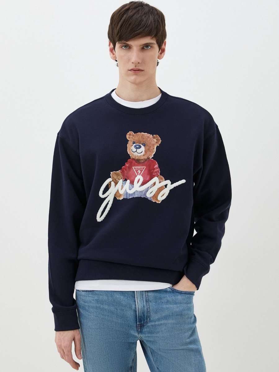 Pánská tmavě modrá mikina s potiskem od Guess.