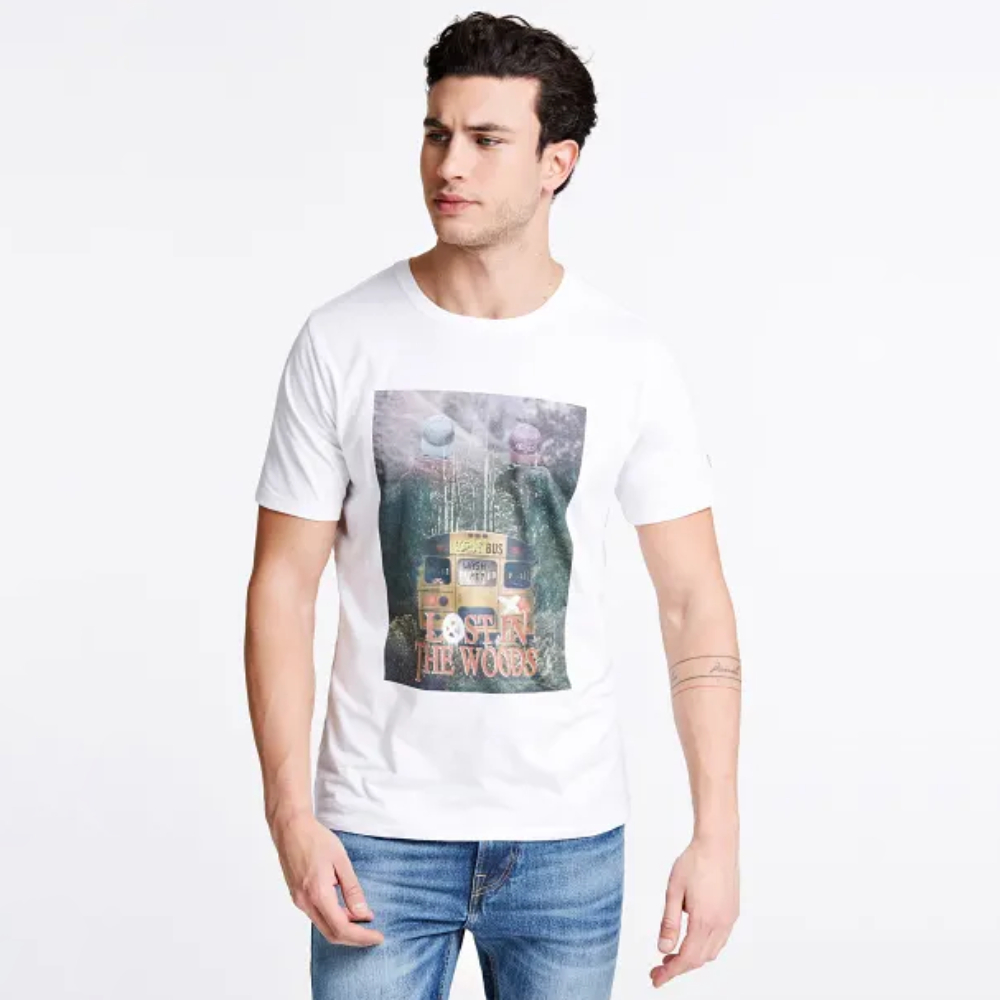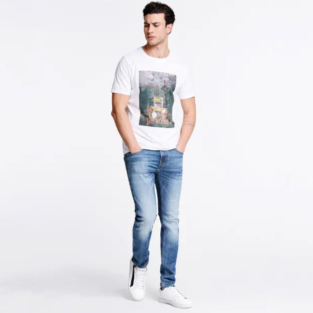 Pánské bílé triko s potiskem od Guess.