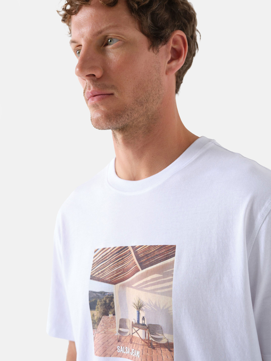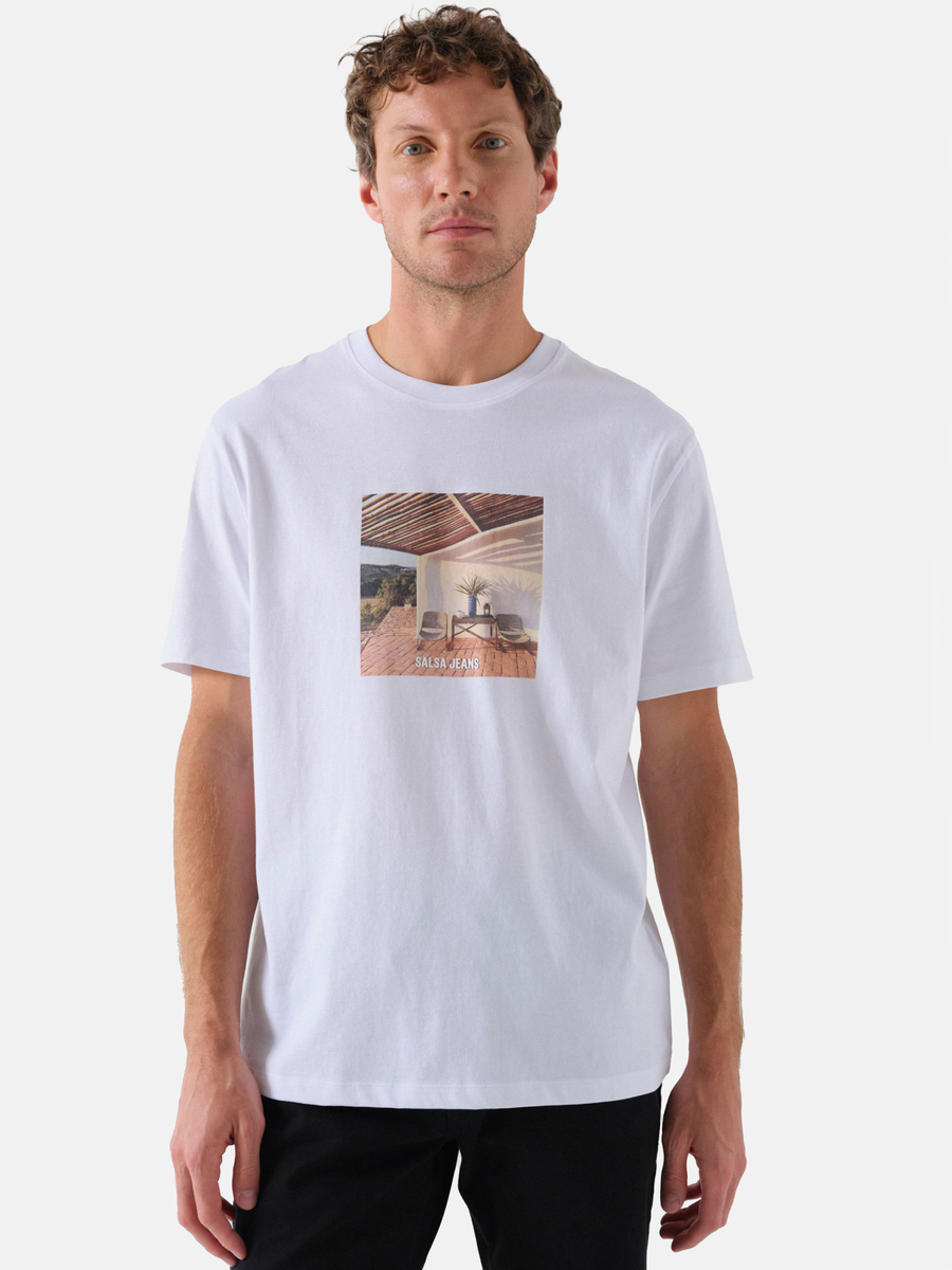 Pánské bílé tričko s potiskem od Salsa jeans.