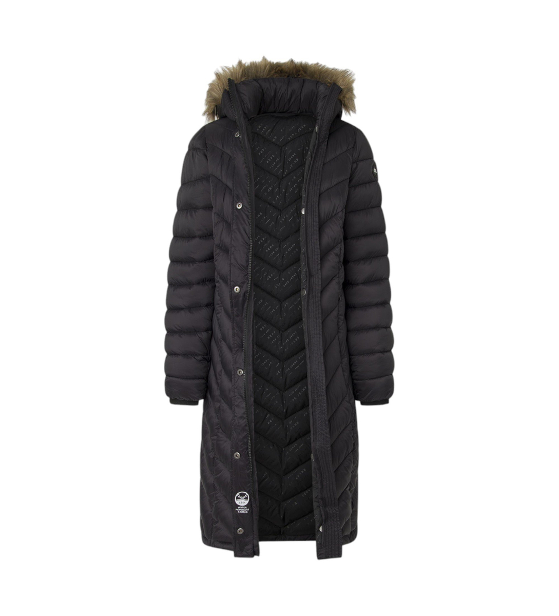 Bunda má odnímatelnou kapuci s umělou kožešinou.