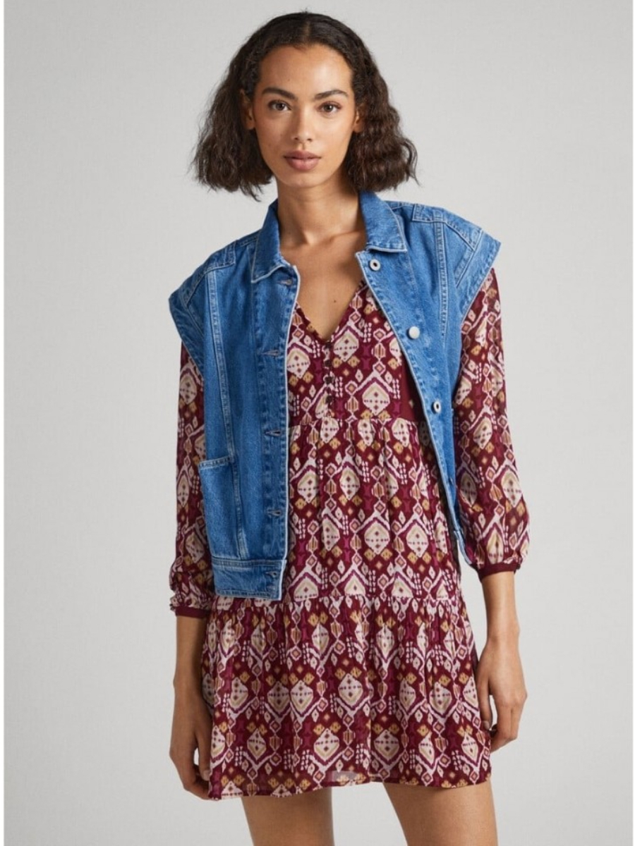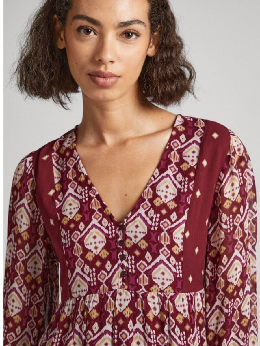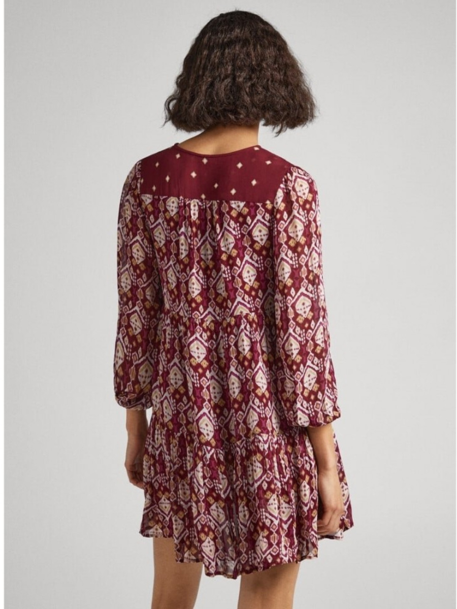 Dámské vínové vzorované šaty od Pepe Jeans.