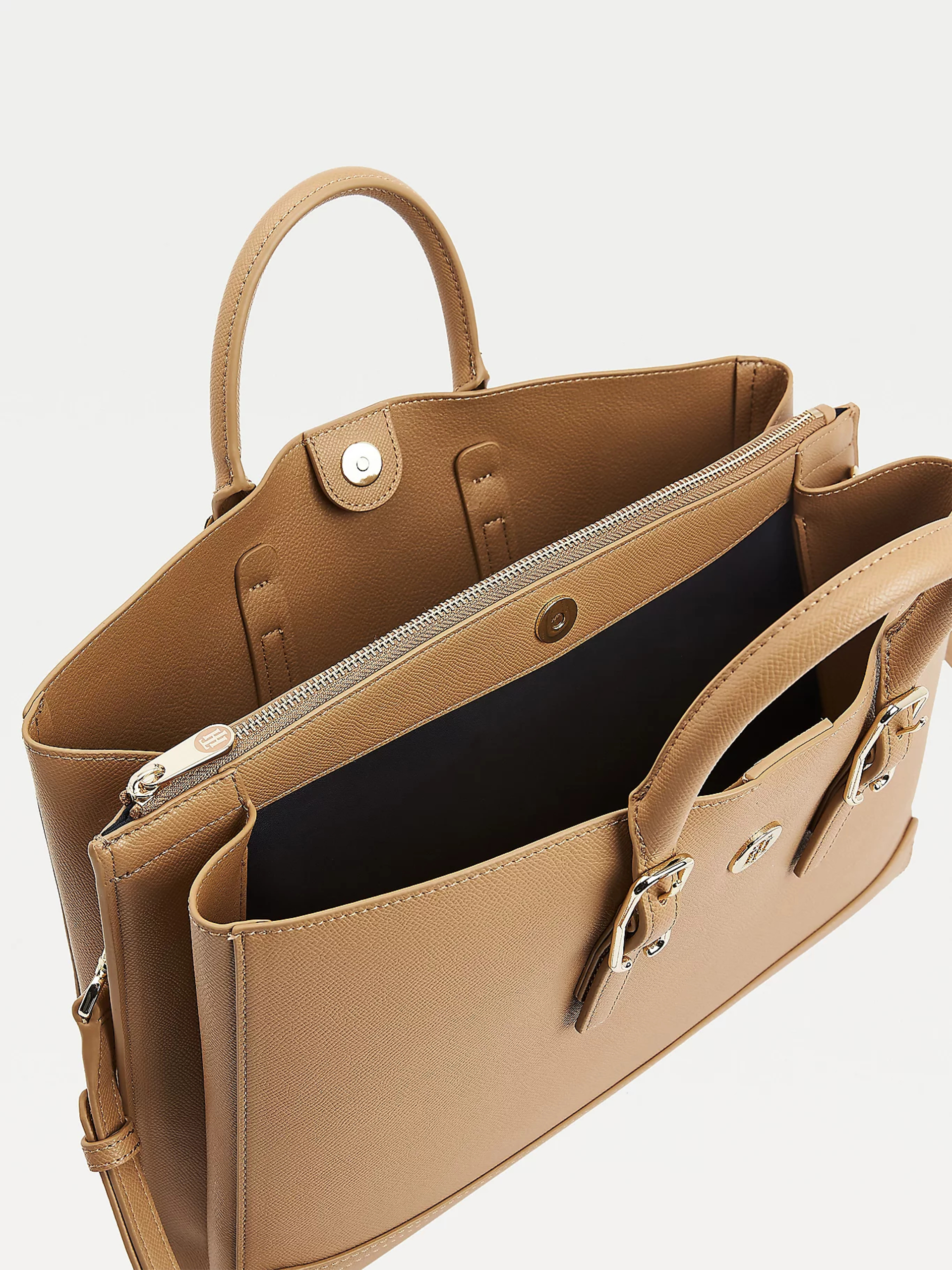 Kabelka je rozdělena na tři přihrádky, které spojuje magnet.