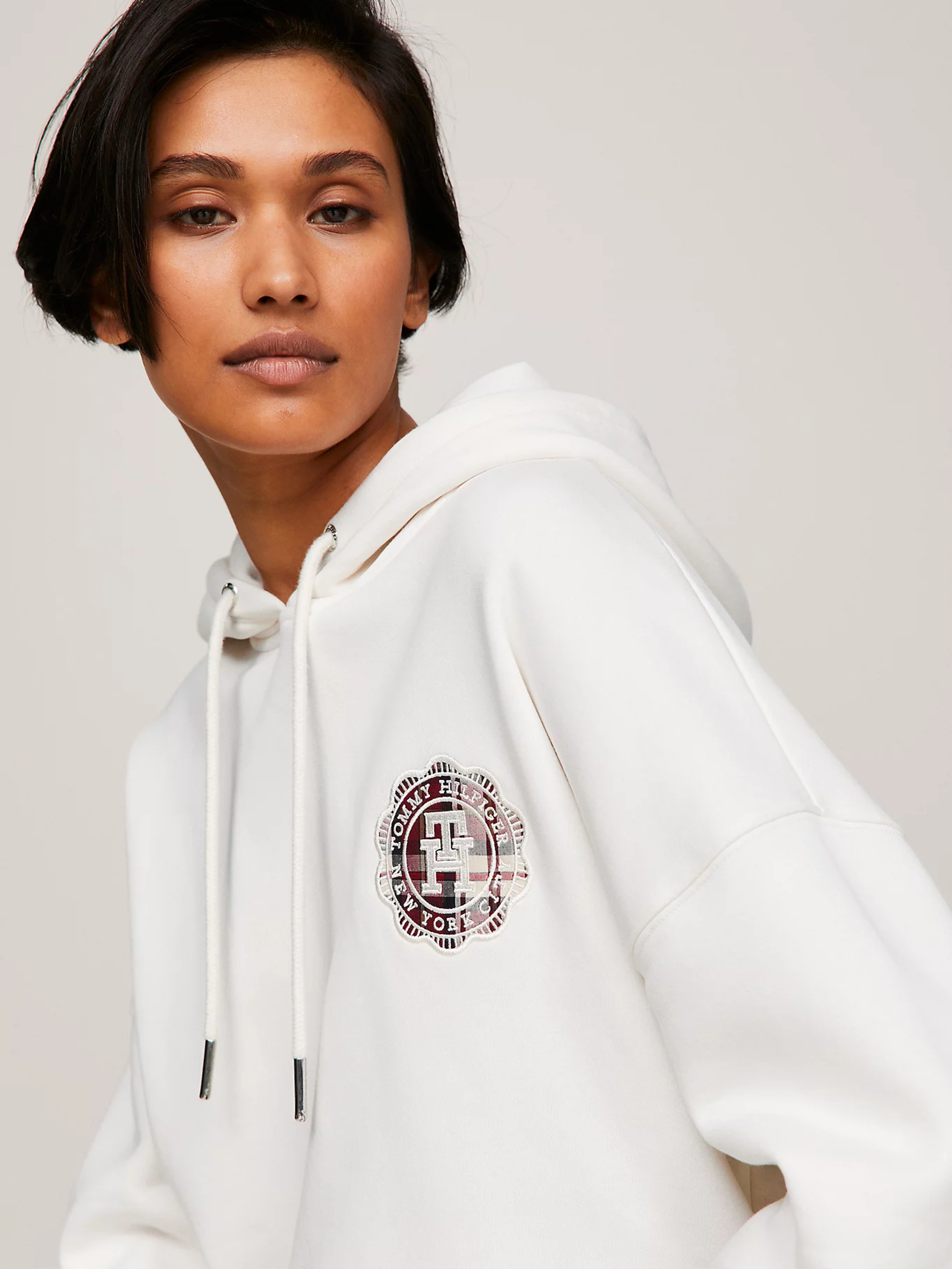 Dámská krémová mikina s kapucí od Tommy Hilfiger.