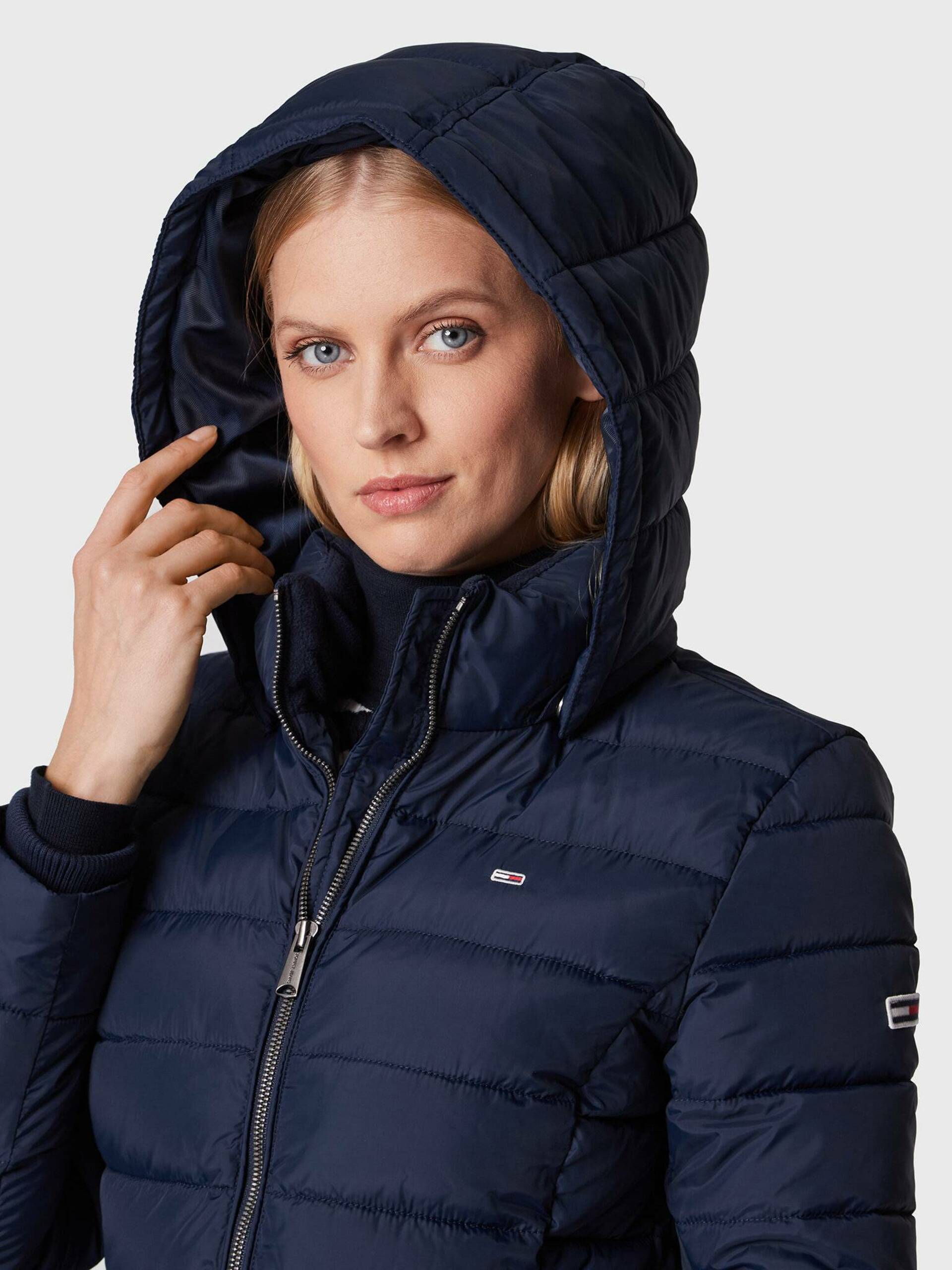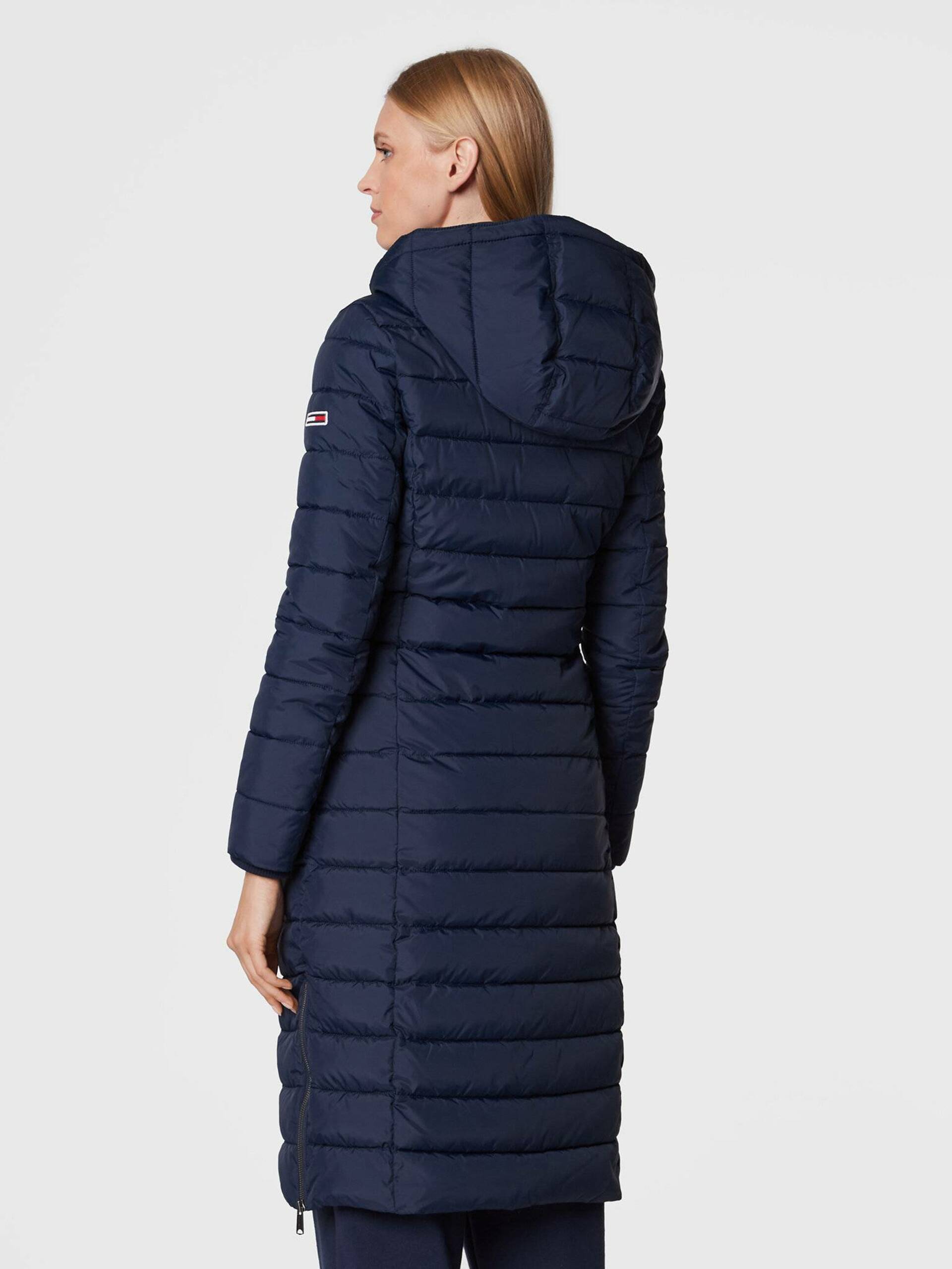 Dámská tmavěmodrá zimní dlouhá bunda od Tommy Jeans.