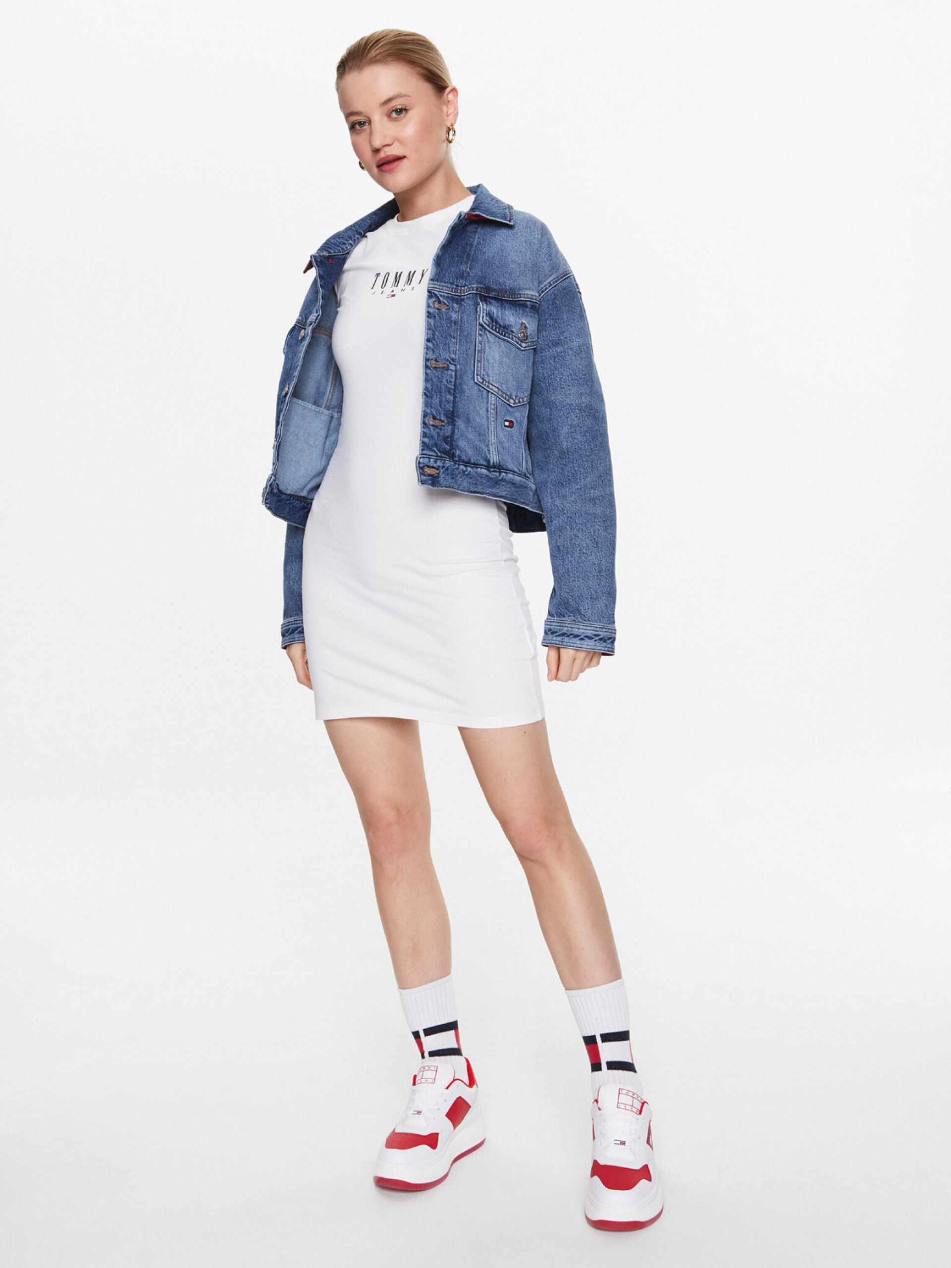 Dámské bílé šaty od Tommy Jeans.