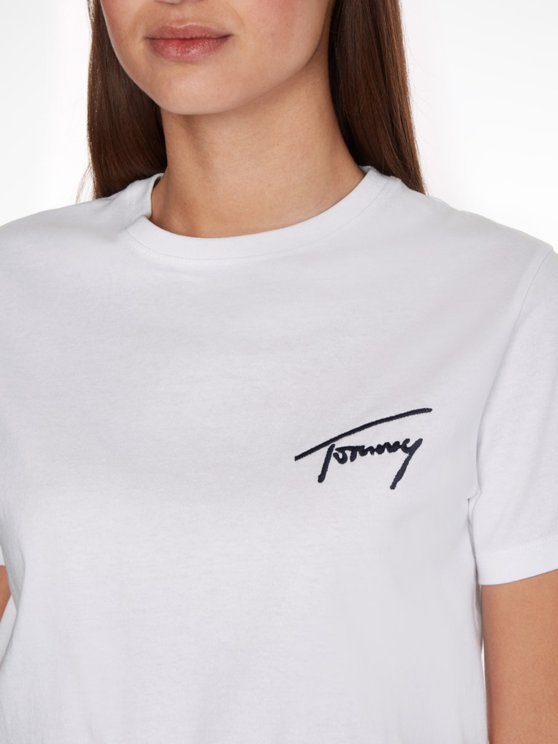 Dámské bílé triko SIGNATURE od Tommy Jeans.