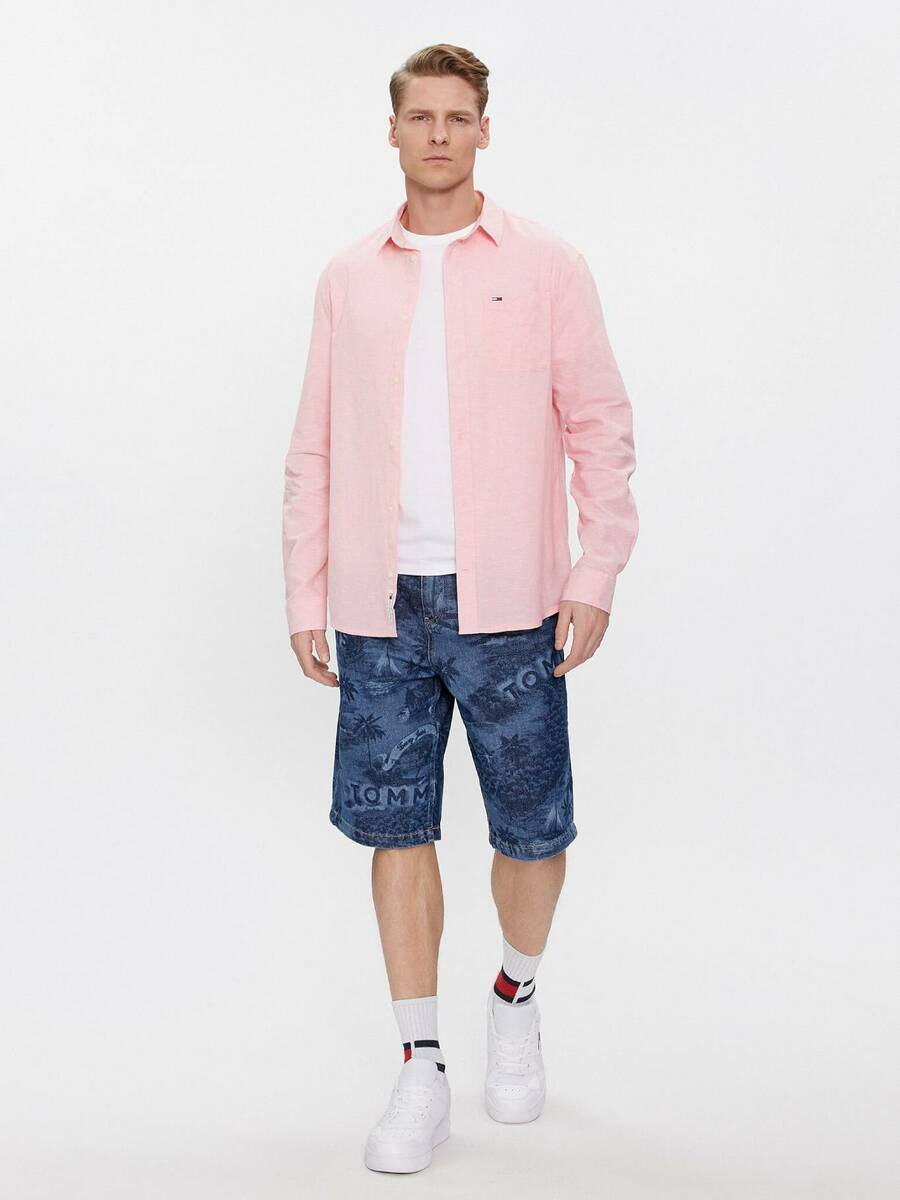 Pánská růžová košile s dlouhým rukávem od Tommy Jeans.