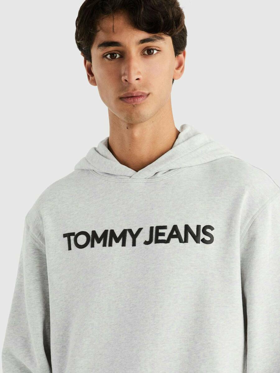 Pánská světle šedá mikina s kapucí od Tommy Jeans.