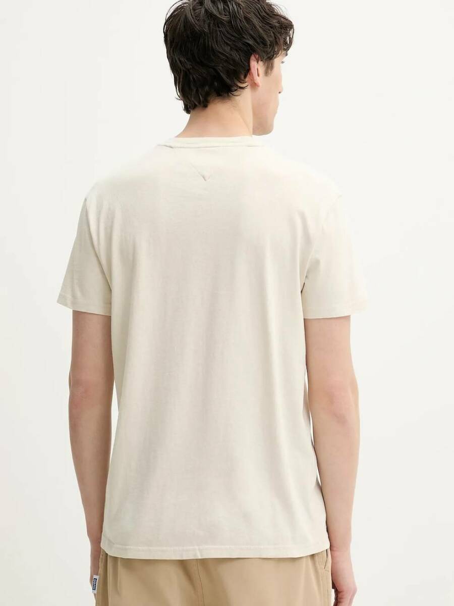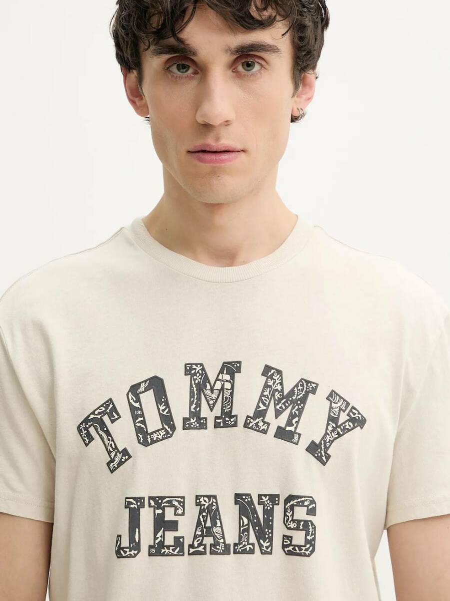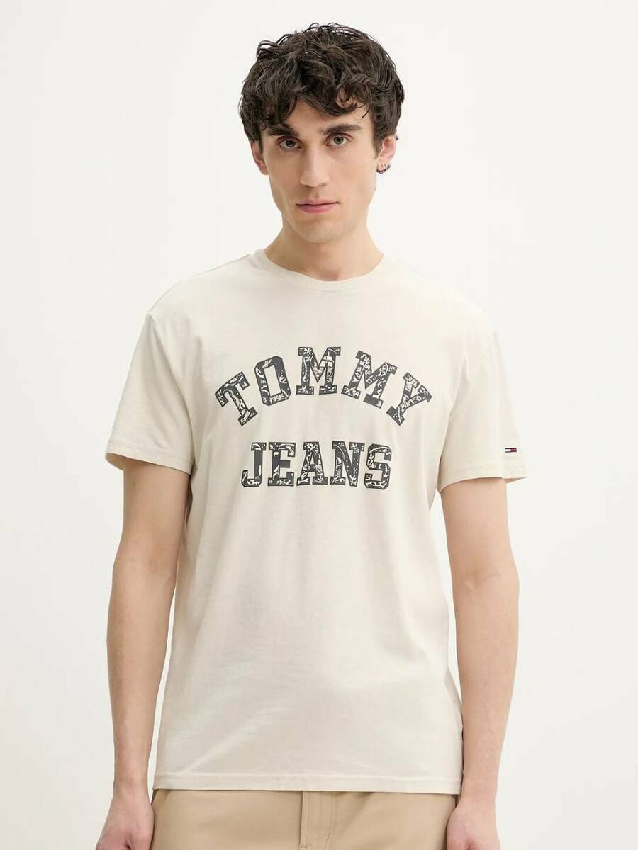 Pánské béžové tričko s potiskem od Tommy Jeans.