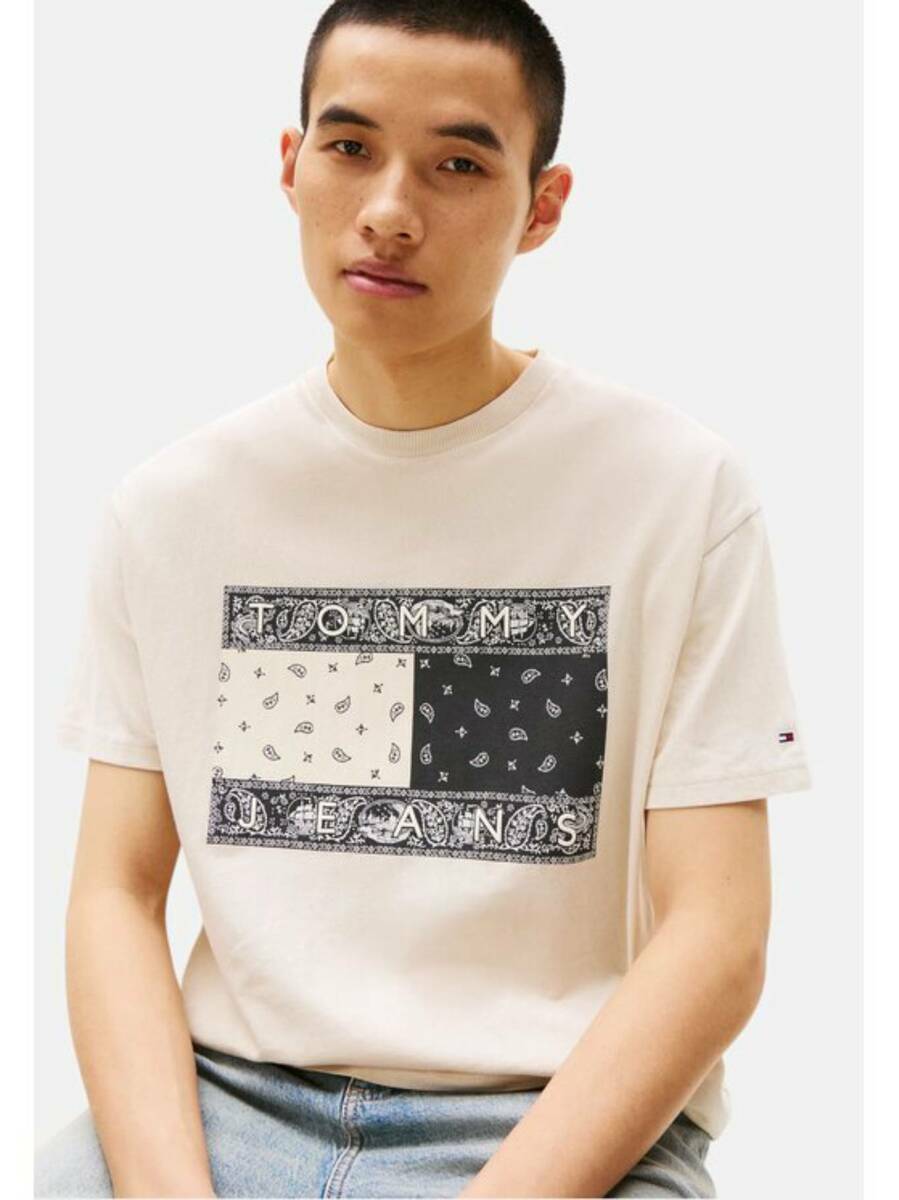 Pánské béžové tričko s potiskem od Tommy Jeans.