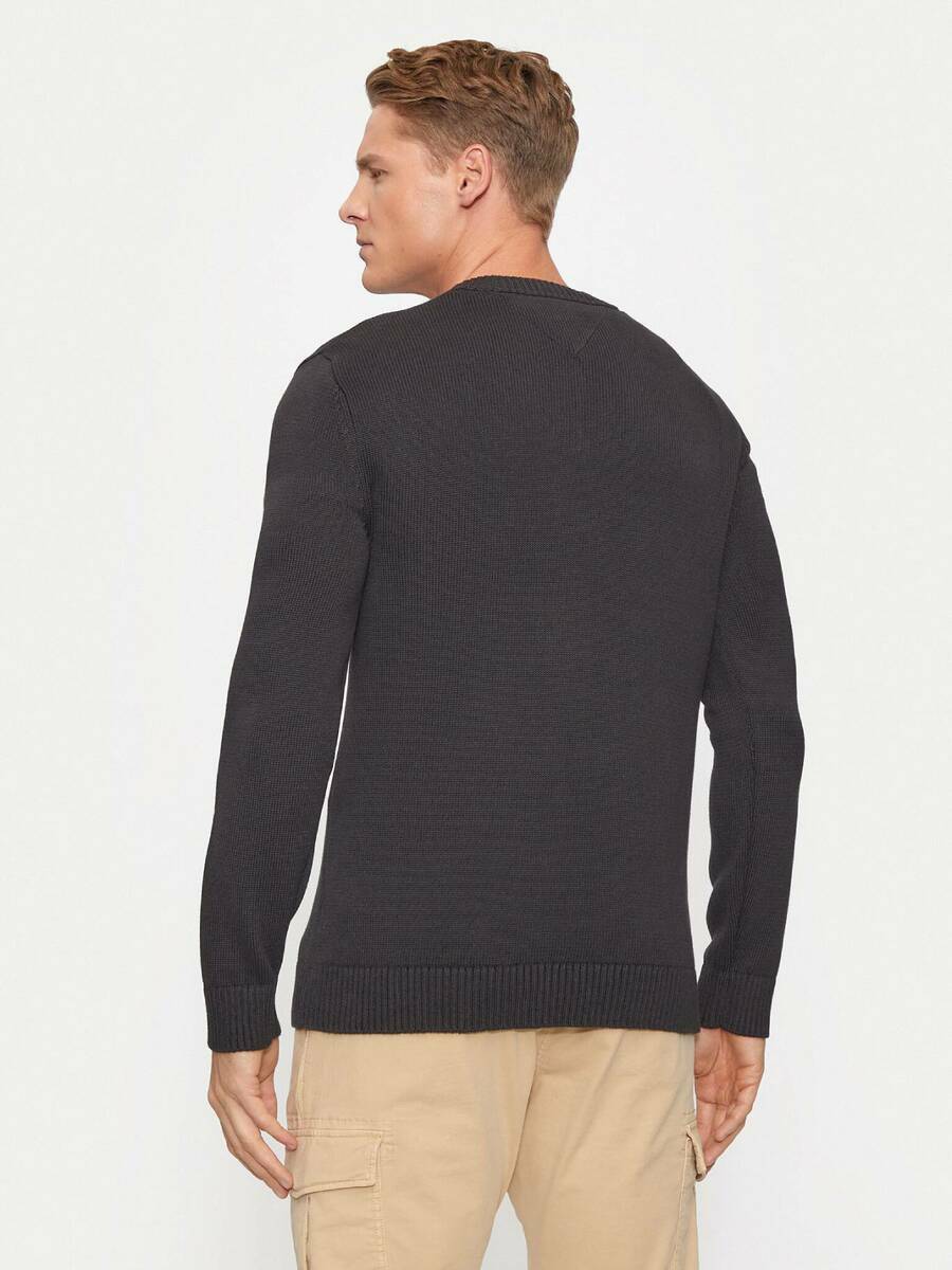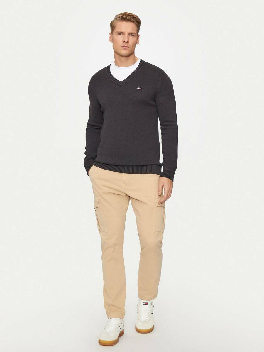 Pánský černý svetr s výstřihem do V od Tommy Jeans.