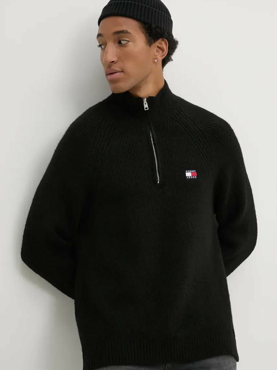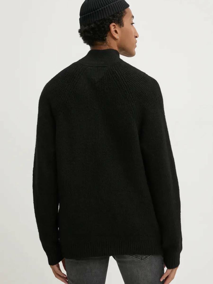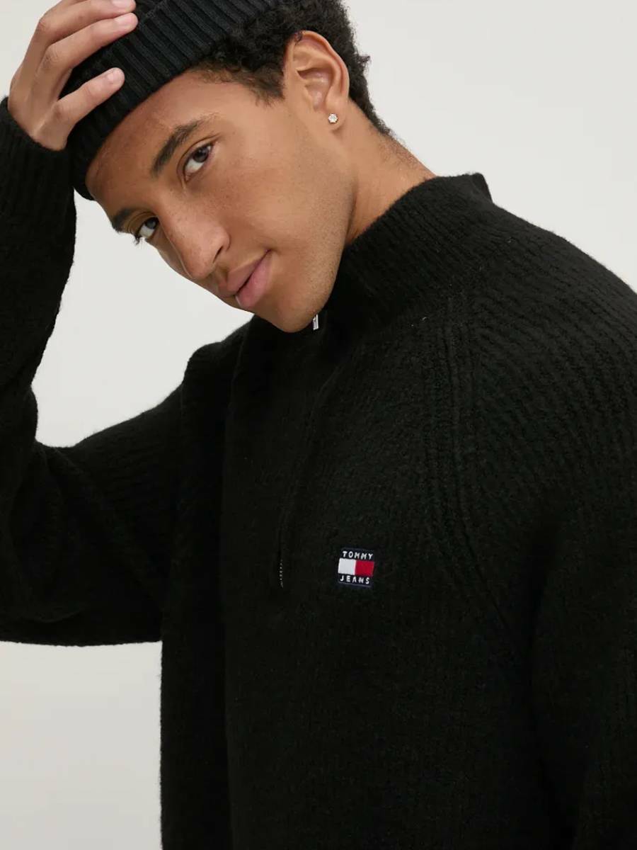 Pánský černý svetr se stojáčkem od Tommy Jeans.