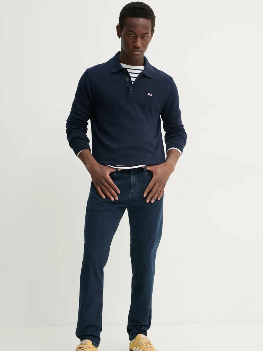 Pánský modrý svetr s límečkem od Tommy Jeans.