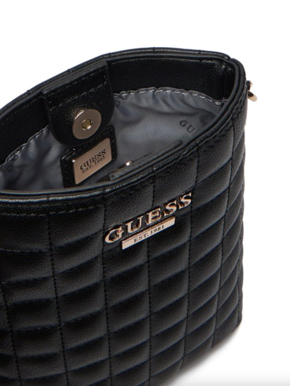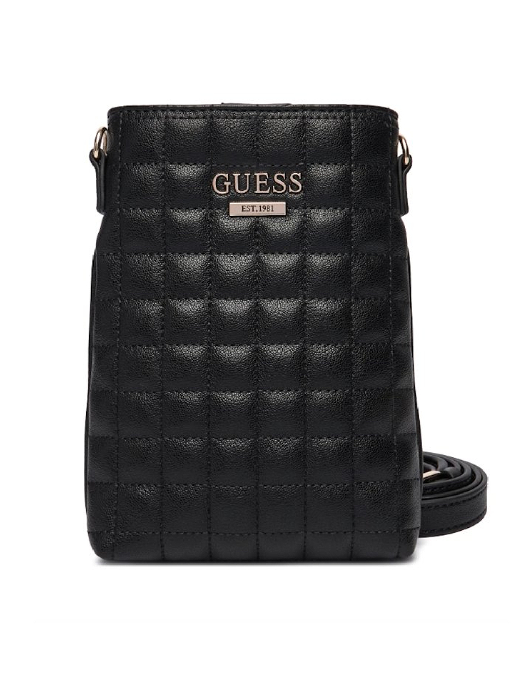 Dámske čierne prešívané puzro na telefón od Guess.