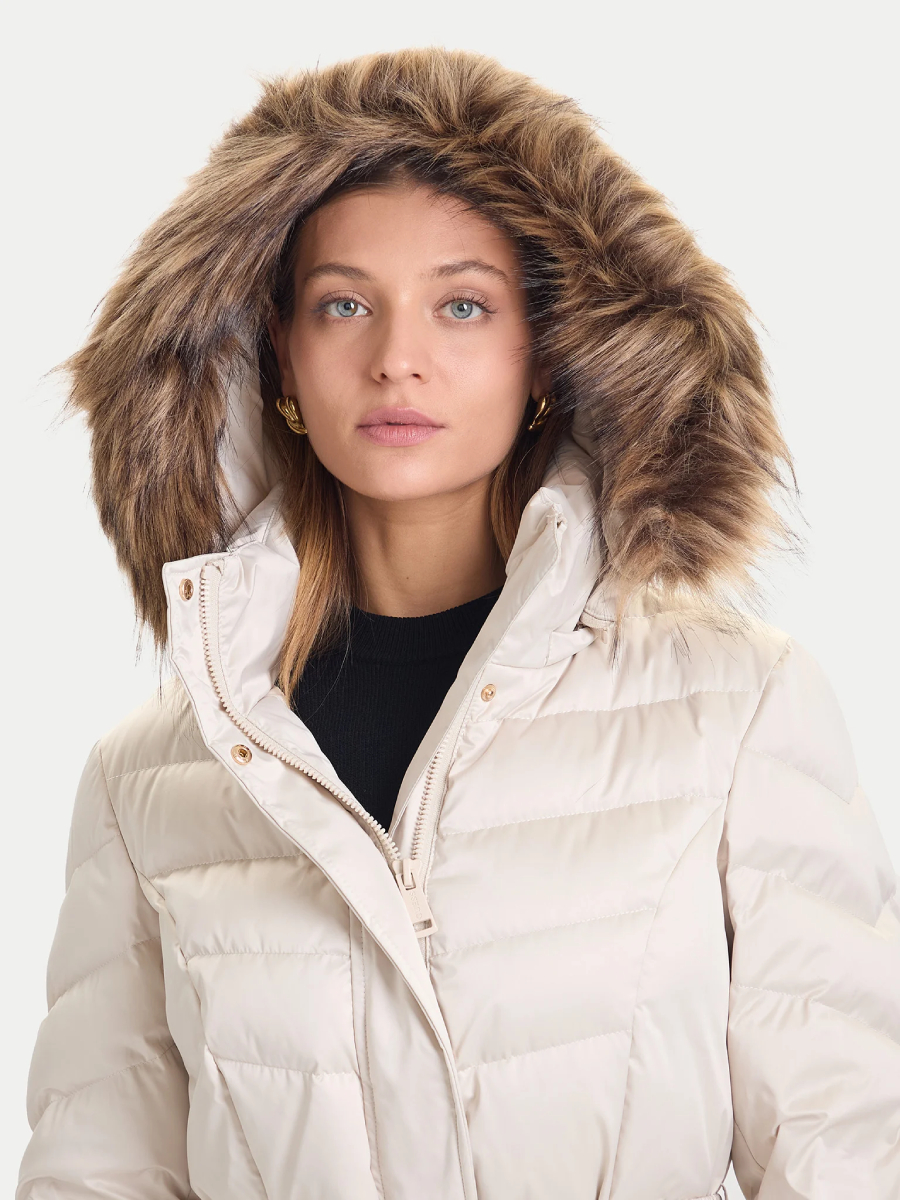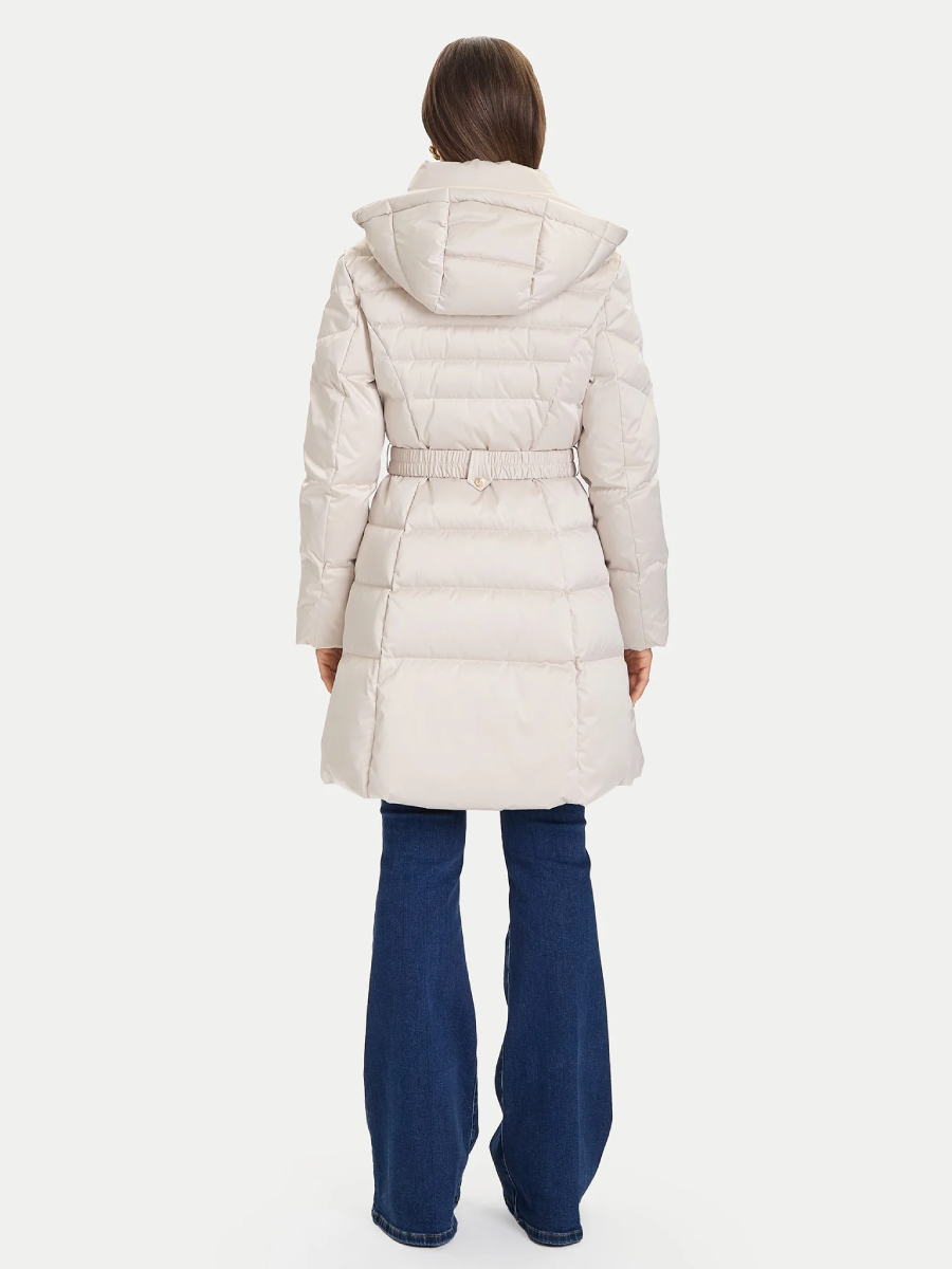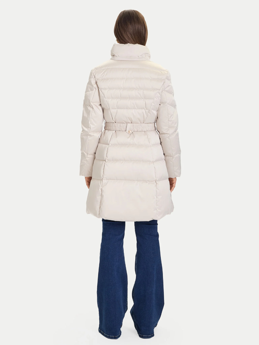 Dámska dlhá krémová prešívaná bunda od Guess.